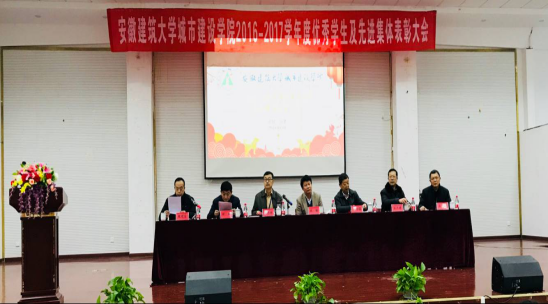 2018年3月8日下午,阳光明媚,美丽的巢湖之畔,安徽建筑大学城市建设学院2016-2017学年度优秀学生及先进集体表彰大会在我院大礼堂隆重举行。学院董事长林瀚,院长张伟林,执行董事赵治滨,副院长王志建、吴约、田园出席本次大会,大会由党委副书记魏宪友主持进行。