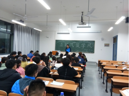 学风是学校全体师生的知、情、意、行在学习问题上的综合表现。为响应学校号召,树立班级学风,在辅导员张洲老师的带领下,工程造价1701班于3月22日在南教207召开了关于正班风、促学风的主题班会。