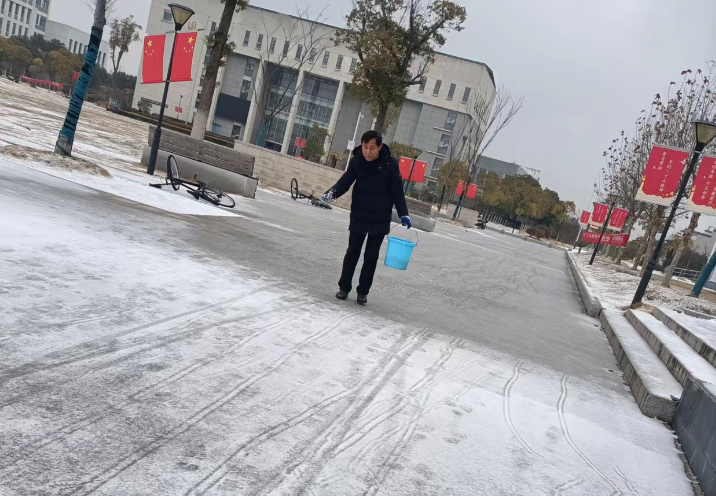 为确保校园道路畅通,保障新学期开学师生安全返校。2月23日、24日,后勤保卫处开展“清积雪 通道路 迎师生”活动,周密部署、分工明确,及时启动冰冻雨雪天气的应急预案。后勤保卫处处长祝杰,副处长蒯智林、李辉迅速组织工作人员、物业人员、保安队员分别在滨湖、北城两校区积极开展清积雪、除冻雨行动。