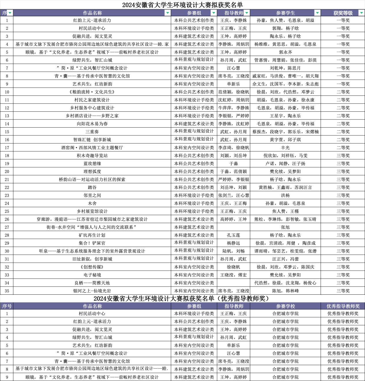 近日,备受瞩目的2024年安徽省大学生环境设计大赛评审结果正式公布,我校学子凭借卓越的专业素养与创新设计能力,共荣获44个奖项,其中包括一等奖9项、二等奖8项、三等奖18项,以及优秀指导教师奖9项。