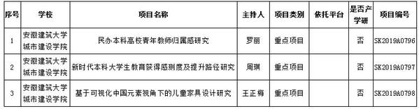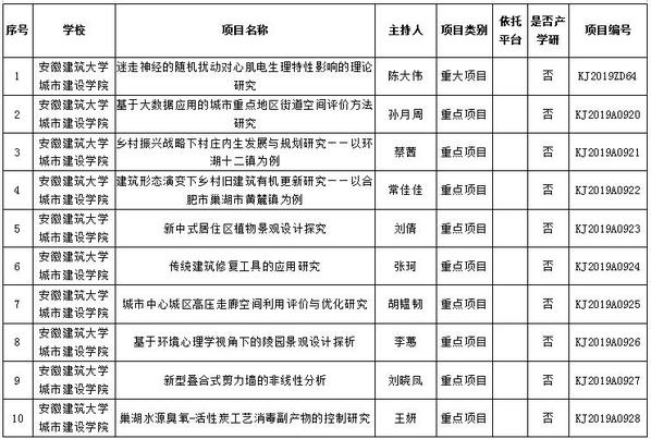 2019年安徽建筑大学城市建设学院立项的校级自然科学类、人文社科类科研项目立项结果如下: