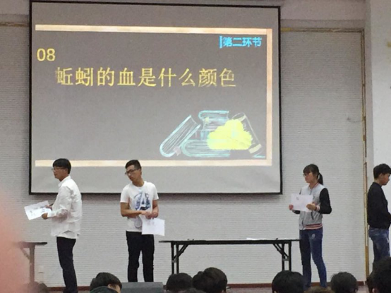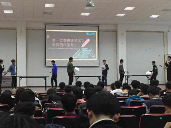 本次“一站到底”知识竞赛分为团体赛与个人赛两个环节,不但需要个人的努力,更需要团体的配合。并且其涉及人文、地理、娱乐、历史等各类课外知识,这就要求参赛队员需要有丰富的课外知识储备量。第一轮团体赛环节,各班派出的队员都进行了激烈的对抗,一组三位队员不断讨论,再统一答案,努力为自己、为班级争得一份荣誉。个人赛终场“诸神之战”,土木一班张磊“过关斩将”,奋勇答题,勇夺本次“一站到底”的战神。