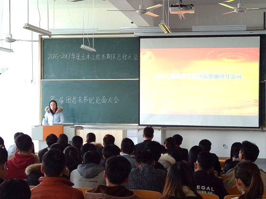 本次会议开场由陈雅丽老师为学生致辞。由土木工程学生会各部门代表总结2016年的学生工作开展情况及学生工作开展中所存在的问题。学生会主席刘正义同学、副主席左梦君同学和副主席康晓彬同学也分别对各部门工作开展情况做出总结。并由本次会议的嘉宾为我系优秀干事与优秀干部颁发了奖状。