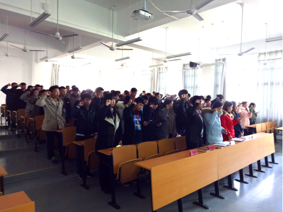 土木工程系学生会主席刘正义同学为大家致辞,并带领土木工程系学生会全体成员握拳宣誓。黑板上用粉笔写下的“责任”二字更是体现着我校莘莘学子对城建学院最庄严的承诺。