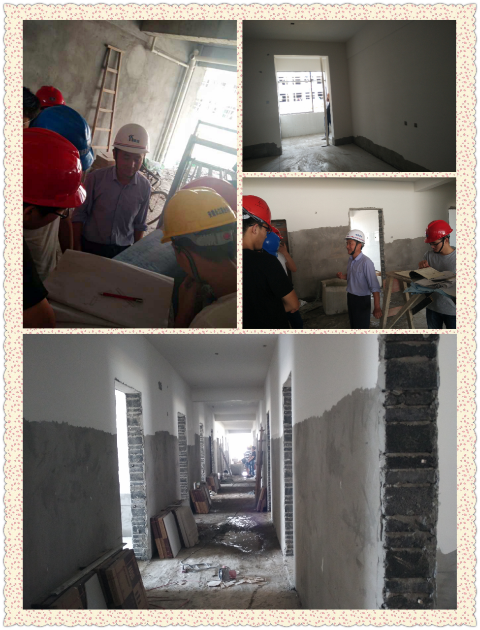 到达宿舍楼施工现场后首先项目部徐工将大家叫到一起,对照着宿舍楼的施工结构图大致给大家讲解了一下整个宿舍楼的结构和布局。在徐工的介绍中我们了解到新生宿舍楼是典型的混凝土框架结构,它是用钢筋和混凝土浇筑的梁和柱作为房屋的框架,然后再填上填充墙,混凝土抗压性能好,钢筋抗拉性能好,二者结合在一起使得房屋建筑的抗拉-抗压性能得到显著提升。之后大家对新生宿舍楼的各个位置进行了参观和学习,最后徐工又将大家叫到了一起,分享了自己多年的施工经验,同时也勉励大家在大学期间认真学习,多掌握点真本事,为将来的工作埋下伏笔!