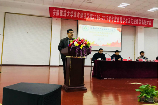 2018年3月8日下午,阳光明媚,美丽的巢湖之畔,安徽建筑大学城市建设学院2016-2017学年度优秀学生及先进集体表彰大会在我院大礼堂隆重举行。学院董事长林瀚,院长张伟林,执行董事赵治滨,副院长王志建、吴约、田园出席本次大会,大会由党委副书记魏宪友主持进行。