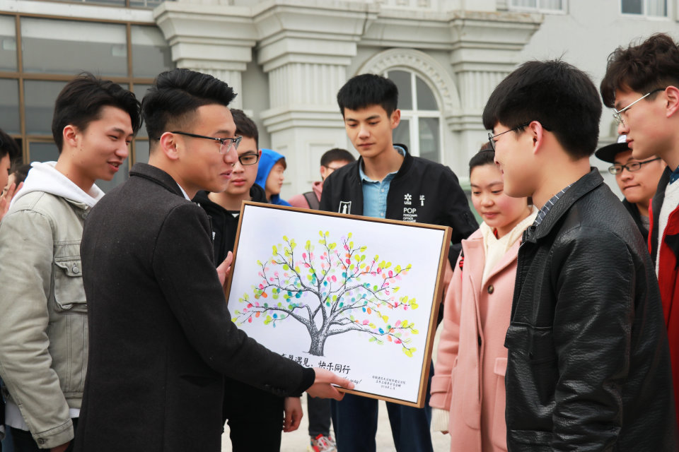 交流会结束后,吴研代表我系学生会向安徽外国语学院学生会赠送象征两校友情的指印画及6套印有我校风景的精美明信片,祝福两校友谊长久,期待未来更加密切的交流。