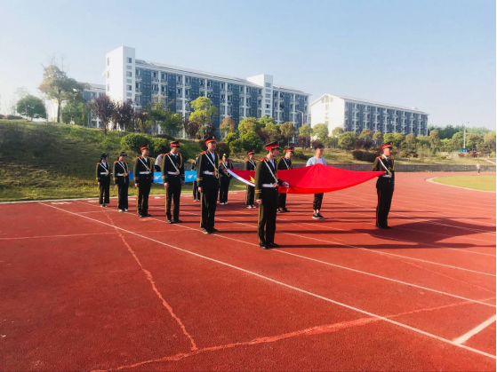 在高昂激荡的旋律中,国旗班旗手们分别举着鲜艳的五星红旗和我院校旗一前一后地走过主席台。看,他们目光如炬,气势如虹,动作整齐,沉着有力,他们用坚毅的步伐,展现出城建学子的龙虎声威!
