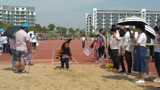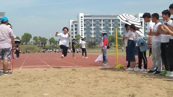 上午十点,女子跳远的预决赛开始,我系一共六位参赛选手,分别来自土木、安工、水务和环能。冲刺、起跳、在空中划过一道优美的弧线,最终落入沙坑。她们用完美的表现充分诠释了“谁说女子不如男”!,她们在赛场上的英姿和飞扬的身影鼓舞着我们的内心。
