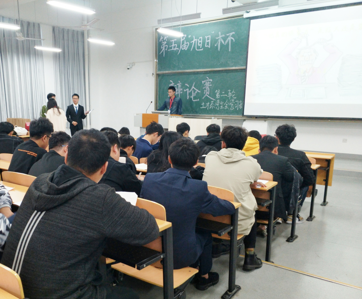 为提升学生思辨能力和创造力,丰富大学生课外生活,增强学生自主思考能力,由土木工程系学习部举办的大学生辩论赛于11月11日晚7点举行,出席的嘉宾有土木系团支部书记陈丽丽老师,学生会主席王玮,副主席王乐、杜成。