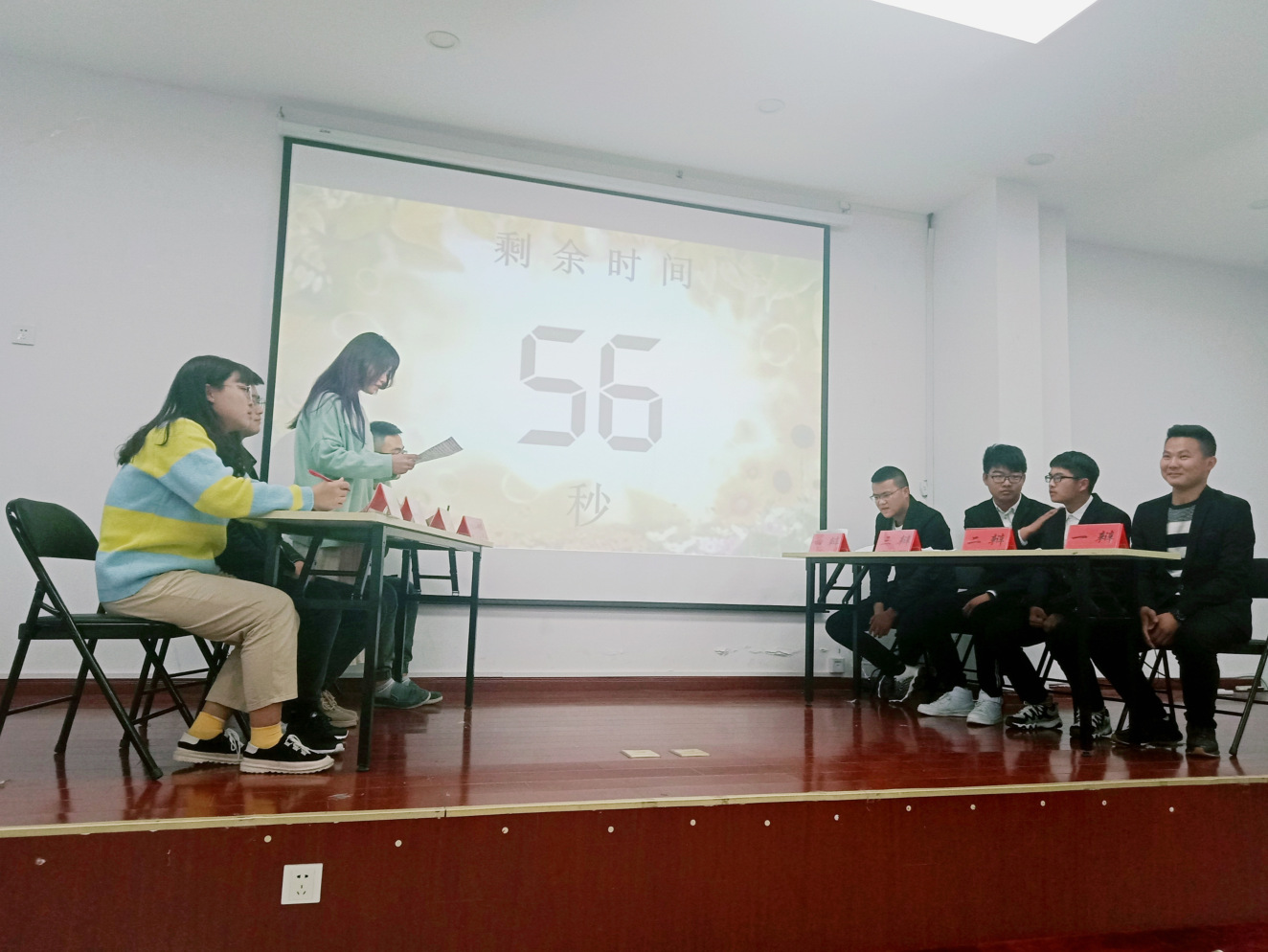 第一轮比赛在大礼堂举行,大家踊跃发言,积极作答,每个选手都表现出了自己出色的一面。同学们在比赛时激烈的辩论使整个赛场都充满了活跃的气氛,台下的观众也被带起了激情,第一轮比赛七个队伍脱颖而出进入下一轮比赛。