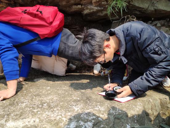 实习的第四站是巢湖平顶山,同学们观察了平顶山向斜两翼地层岩性、产状变化和核部形态。