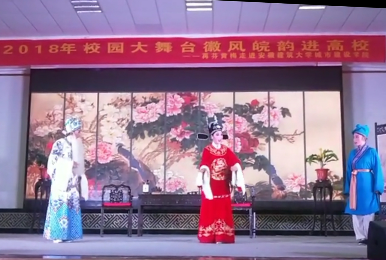 12月20日下午2点半,安徽省宣传部,安徽省教育厅,安徽省文化厅举办的“2018校园大舞台,徽风皖韵进高校”活动在安徽建筑大学城市建设学院大礼堂举行。安庆再芬黄梅艺术剧院的演员们带来了经典黄梅戏《女驸马》,众多学院领导和广大师生齐聚于此,共同感受了黄梅戏所带来的魅力。