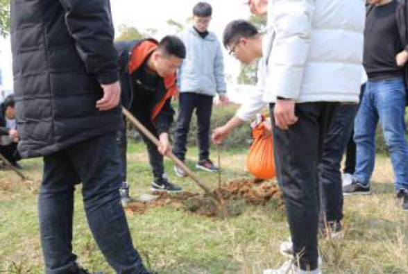 在学习之余植树不仅可以促进友谊同时也可以美化环境,在植树的过程中大家齐心协力,团结一心,一颗颗树苗种下同学们美好的希冀。