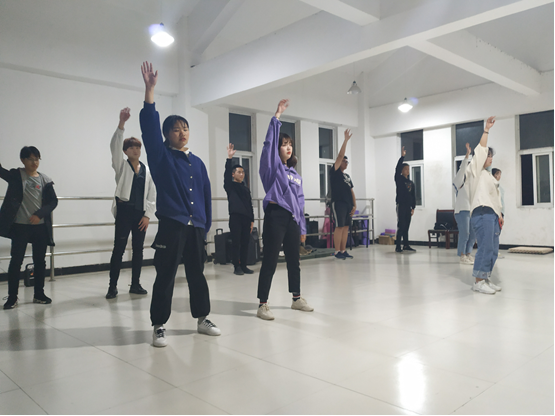 踏入排练室,入眼就是一群小哥哥小姐姐们潇洒的身影。随着音乐的律动,跟着领跳者的舞步,同学们认真地学习每一个动作,努力把每个动作都做到完美。
