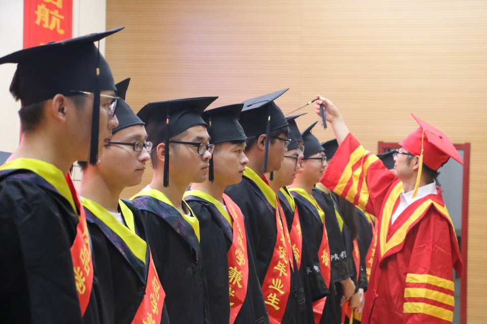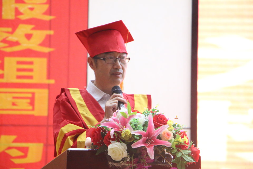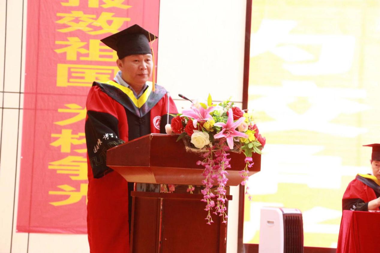 紧接着院长张伟林致辞,对15级毕业生大学四年为学校获得的各项荣誉进行了赞赏,并对所有毕业生提出四点希望:一是希望成为道德高尚的人。二是希望成为荣辱担当的人,用担当的精神构建精彩的人生。三是希望成为知识渊博的人。四是希望成为精益求精的人,远离浮躁,精雕细琢。愿历经千帆,归来仍是少年!曾经小小少年,如今风度翩翩,愿你归来仍是少年模样。典礼最后院长张伟林为毕业生们一一扶正流苏。这是最庄严最严肃,也是最温馨的一项毕业仪式。麦穗似的流苏的扶正代表着毕业生正式毕业,迈向成熟,蕴含着领导对毕业生美好的祝福。
