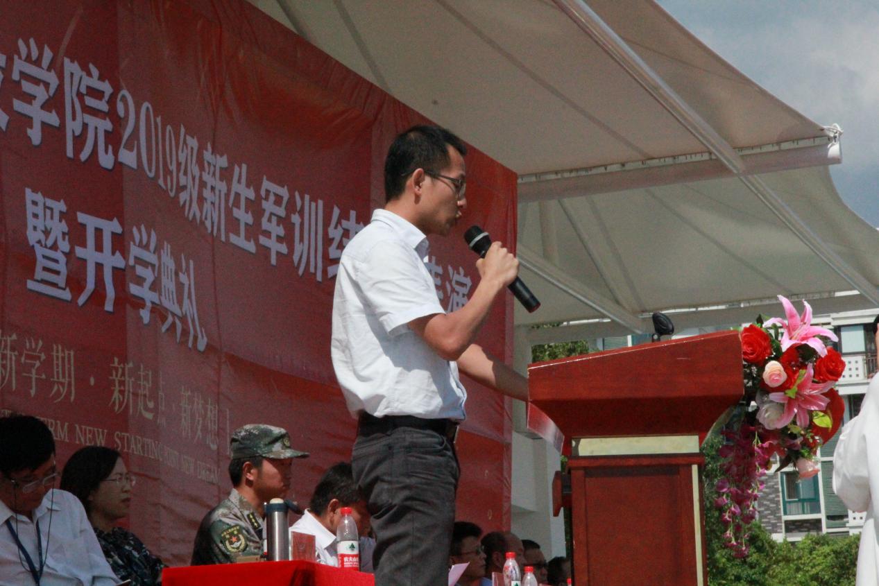 接着16级水务专业盛家飞同学和新生辅导员吴雅婷老师发表演讲,学长结合自身经历对新生们提出了自己的看法,希望他们能充实自己生活,珍惜大学时光。吴雅婷老师首先对经历了14天军训的新生表示赞扬,同时也希望他们在接下来的日子里在学习方面也能再接再厉。