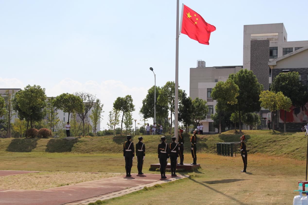 当总教官发出已准备就绪的口号后,田园副院长宣布安徽建筑大学城市建设学院2019级新生军训结训汇报表演暨开学典礼正式开始。全场所有的人起立,庄严地面向国旗行注目礼并奏唱国歌,这是一个重要的时刻,也是作为中华儿女最骄傲的时刻。
