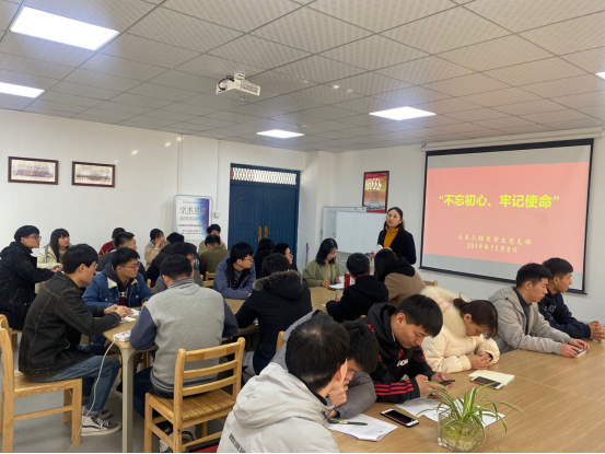 根据习近平总书记关于“不忘初心,牢记使命”主题教育重要讲话和重要指示批示精神,为深入学习贯彻党的十九届四中全会精神,巩固“不忘初心、牢记使命”主题教育学习成果,加强支部建设。土木系学生党支部严格按照学院党委要求,于2019年12月5日在土木工程系党员活动室召开“不忘初心,牢记使命”主题教育专题组织生活会,开展民主评议党员工作。本次会议由土木工程系学生党支部书记范慧娟主持,到场的有学生党支部组织委员(兼纪检委员)陈苏雨,宣传委员(兼青年委员)吴雅婷和支部全体学生党员。