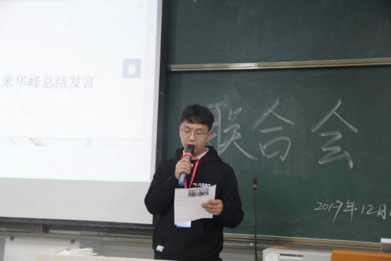 之后进行的大会第二项为系学生会各部门19级代表为大家介绍部门职能,通过幻灯片播放的形式展示说明,帮助班委们对学生会进行更深入的了解。最后由系学生会主席米华峰同学总结发言,他提到了19级各班这学期所取得的成绩,也表示未来将会带领学生会为大家提供更好的服务。