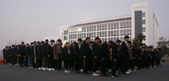 早上6点40分,升旗仪式准时开始。国旗护卫队在庄严的国歌声中将国旗缓缓升到顶端后又慢慢降下,为南京大屠杀的死难者下半旗致哀。在场的全体同学默哀一分钟,一瞬间全场寂静。最后团委伍红平老师发表国旗下演讲,他表示“当代大学生应铭记历史,勿忘国耻,爱我中华,发奋图强,珍惜今天来之不易的和平年代。”