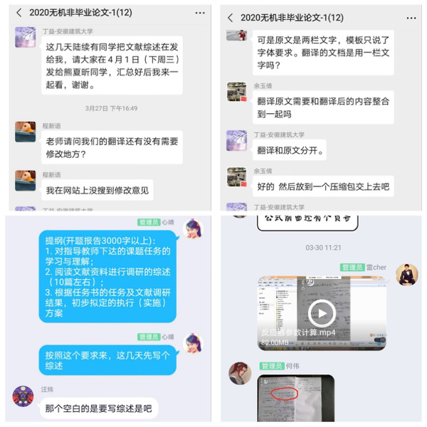 今年学院首次采用线上毕业设计(论文)指导系统,更加方便、快捷、规范管理毕业设计(论文)指导的全过程,老师可以在系统中完成课题发布、发布任务书、发布外文翻译、中期检查等论文设计的全部过程。往年,毕业论文指导多为师生面对面交流;今年,指导老师利用QQ视频、微信群聊等线上交流平台和学生开展交流,积极推进毕业生设计指导工作。由于起初线上指导工作还处于摸索适应阶段,很多师生虽然已开展了毕业设计工作,但对刚启动的毕业设计系统不甚熟悉,导致未能将指导过程及时录入系统。
