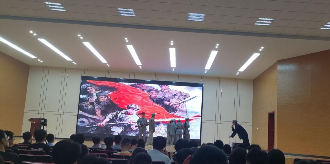 思政部张永会老师演讲的《七律·长征》激情澎湃,拉开了汇演的帷幕,更是把长征即将结束,红军满怀喜悦的战斗激情带给了广大同学。随后话剧《风雪长征路》更是把长征路上的艰难表现的淋淋尽致,让广大同学更深的理解了长征路上的种种艰辛,也让同学们对现在的美好生活更加珍惜。古筝独奏《在北京的金山上》《战台风》更是把现场的氛围推到了新的高潮。最后,此次宣讲活动在集体朗诵《信念永恒》中圆满结束。