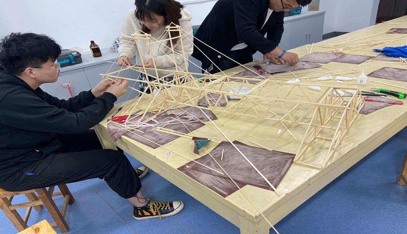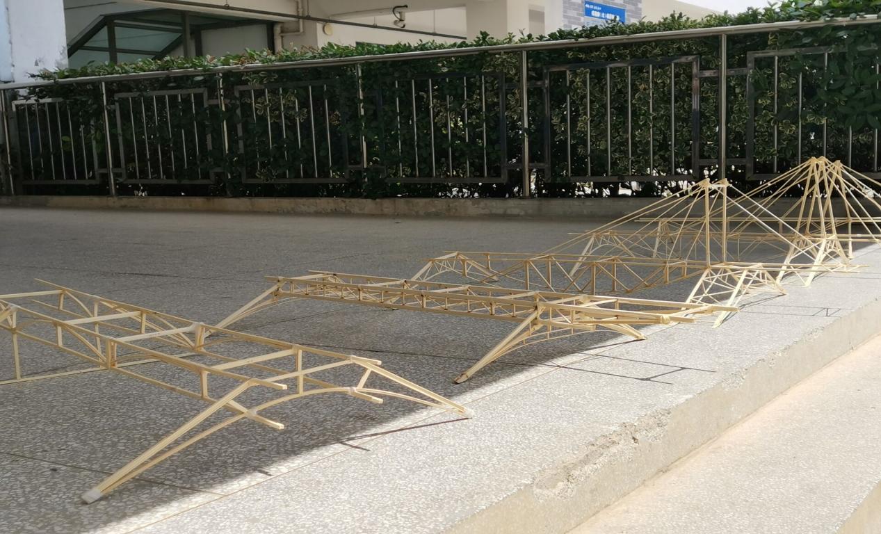 第一个模型的诞生——是三队成员共同的努力。每一位成员都很开心,并亲切的把它命名为“城建大桥1.0”,因为大家相信,还会制作九州体育·(中国)手机网页版的模型,还会有九州体育·(中国)手机网页版的突破。在接下来的时间里,大家面临的,是三个月持续的坚持。虽然没有加载装置,但是每位成员都没有放弃,不断尝试各种形式的桥梁,包括桁架桥、拱桥、斜拉桥等,只为了找到那个更贴近成功的完美模型。