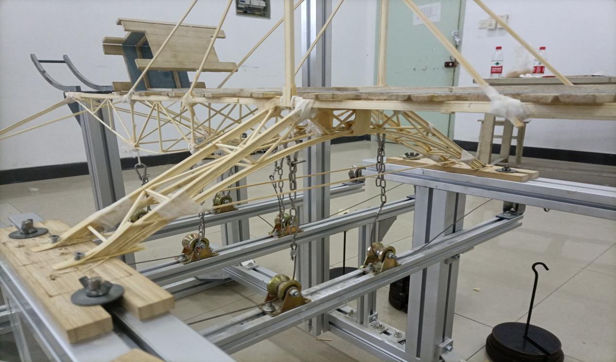 终于,竞赛的日期临近,由于没有加载装置,每位成员的心中忐忑不安。最后一次的机会,同学们带着做好的模型,去安徽建筑大学南区进行最后一次加载。很不幸的是,模型都没有加载成功,这时,离比赛只剩一个夜晚的时间。同学们咬咬牙,吸取最后一次的加载经验,结合老师的指导意见,决定留在安徽建筑大学实验室。哪怕只剩这一夜的时间,也一定要再做出一个能过加载的模型。就这样,漫漫的长夜,对于他们来说,却弥足珍贵。
