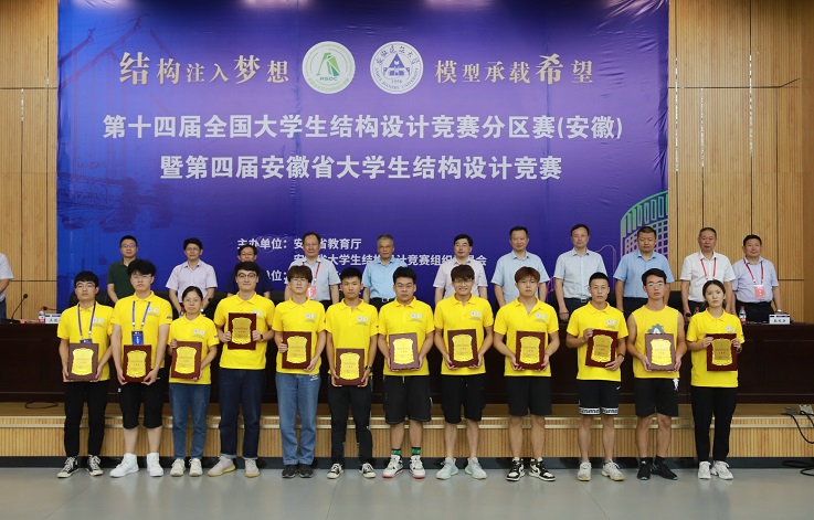 下午三点,闭幕式正式开始。安徽建筑大学副校长丁克伟,安徽省大学生结构设计竞赛秘书长、合肥工业大学土木与水利工程学院常务副院长王静峰,郑州大学教授孙增寿,长安大学教授王春生,安徽省交通规划设计研究总院股份有限公司正高级工程师杨善红,合肥市市政设计研究总院有限公司正高级工程师张乾坤,安徽建工集团控股有限公司正高级工程师陈刚,安徽工业大学建筑工程学院院长于峰,合肥学院城市建设与交通学院院长华建兵,皖西学院建筑与土木工程学院院长戈海玉,安徽科技学院建筑学院院长张远兵出席闭幕式,参赛学校负责人及全体指导教师和全体参赛选手参加。