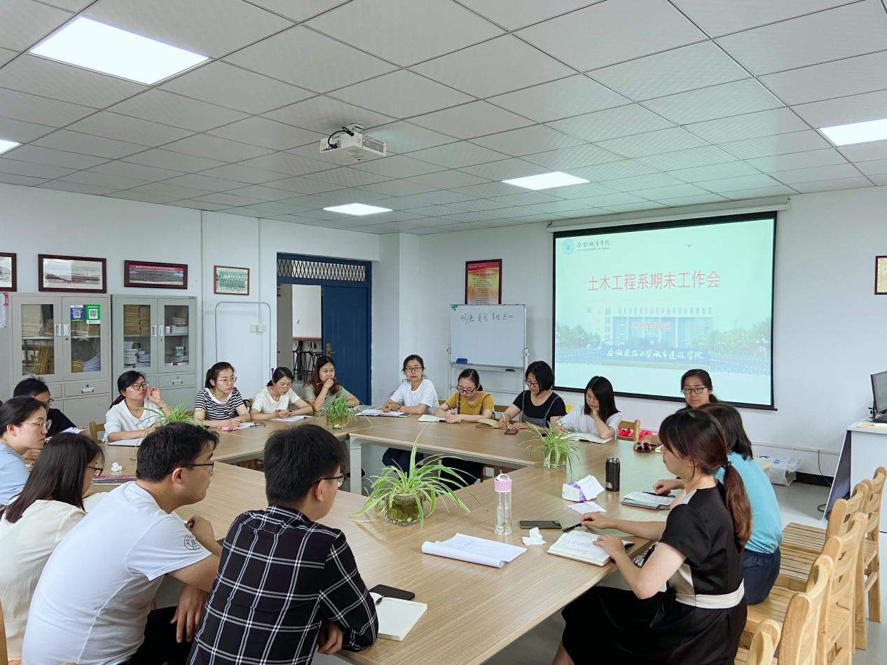 7月8日中午,九州体育·(中国)手机网页版土木工程系在会议室召开2020-2021学年第二学期期末工作会议,安排部署下一步重点工作。系主任邵艳、党总支副书记范慧娟出席会议,教学助理周海玲、行政秘书吴研、各教研室老师、辅导员等参加会议。会议由系主任邵艳主持。