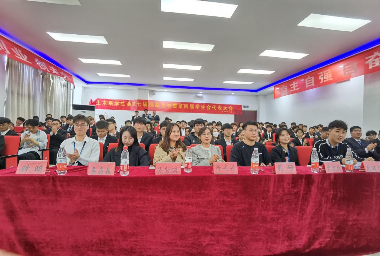 2021年10月14日中午12:20在图书馆一楼小礼堂隆重举行了土木工程系学生会换届大会暨第四届学生代表大会。土木工程系团总支书记陈冉冉老师、土木系学生第一党支部书记吴紫珺老师、土木系系主任助理吴研老师、21级土木系辅导员吴晶晶老师以及土木工程系第六届主席团周明扬同学、严思瞳同学和钟昕同学出席了本次会议。参加本次换届会议的还有各相关部门的工作人员和各班的学生代表等。