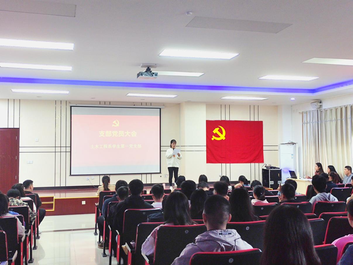 大会由土木工程系学生第一党支部书记吴紫珺同志主持,本次会议第一支部有表决权的到会人数超过应到人数的半数,符合规定人数,会议有效。