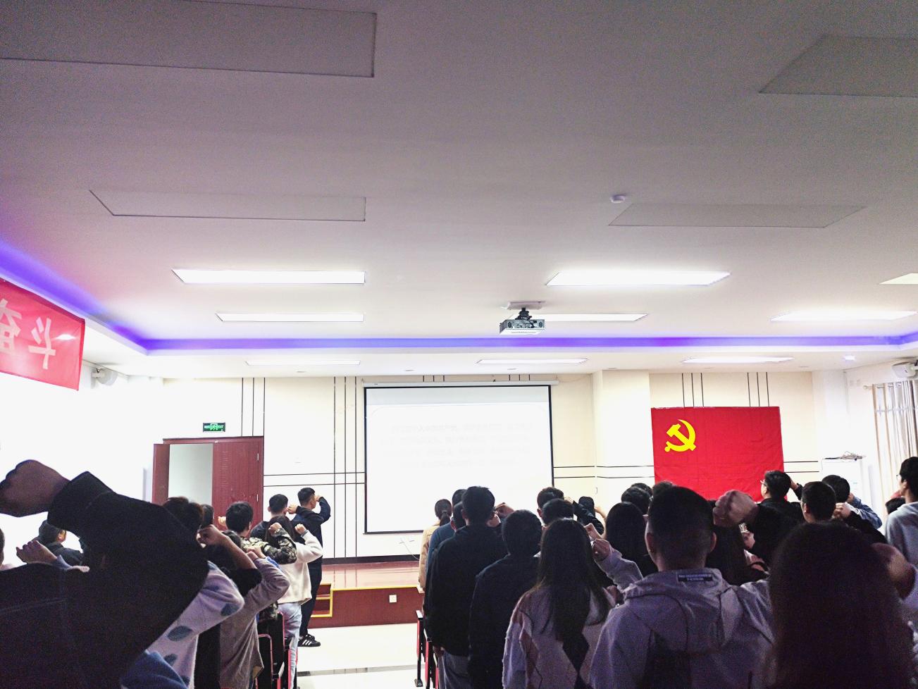八、由土木工程系学生宣传委员王仟喜同志带领全体同志重温入党誓词。