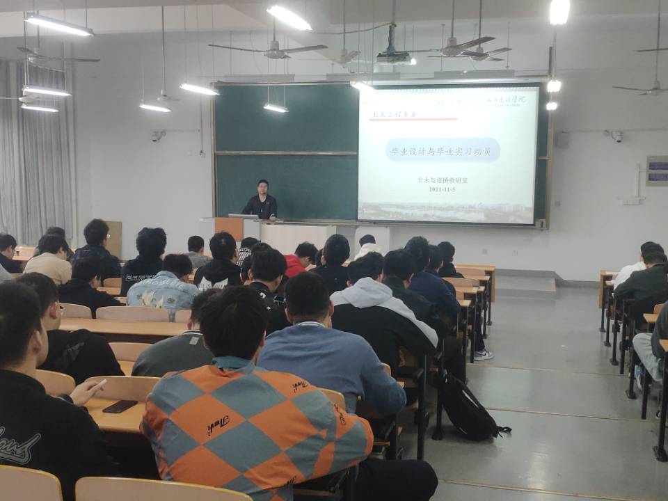 11月5日下午,2018级土木工程专业毕业实习与毕业设计动员大会在南教208召开。本次动员大会由土木与道桥教研室副主任胡祥星老师主持,2018级土木工程专业全体学生参加了动员会。