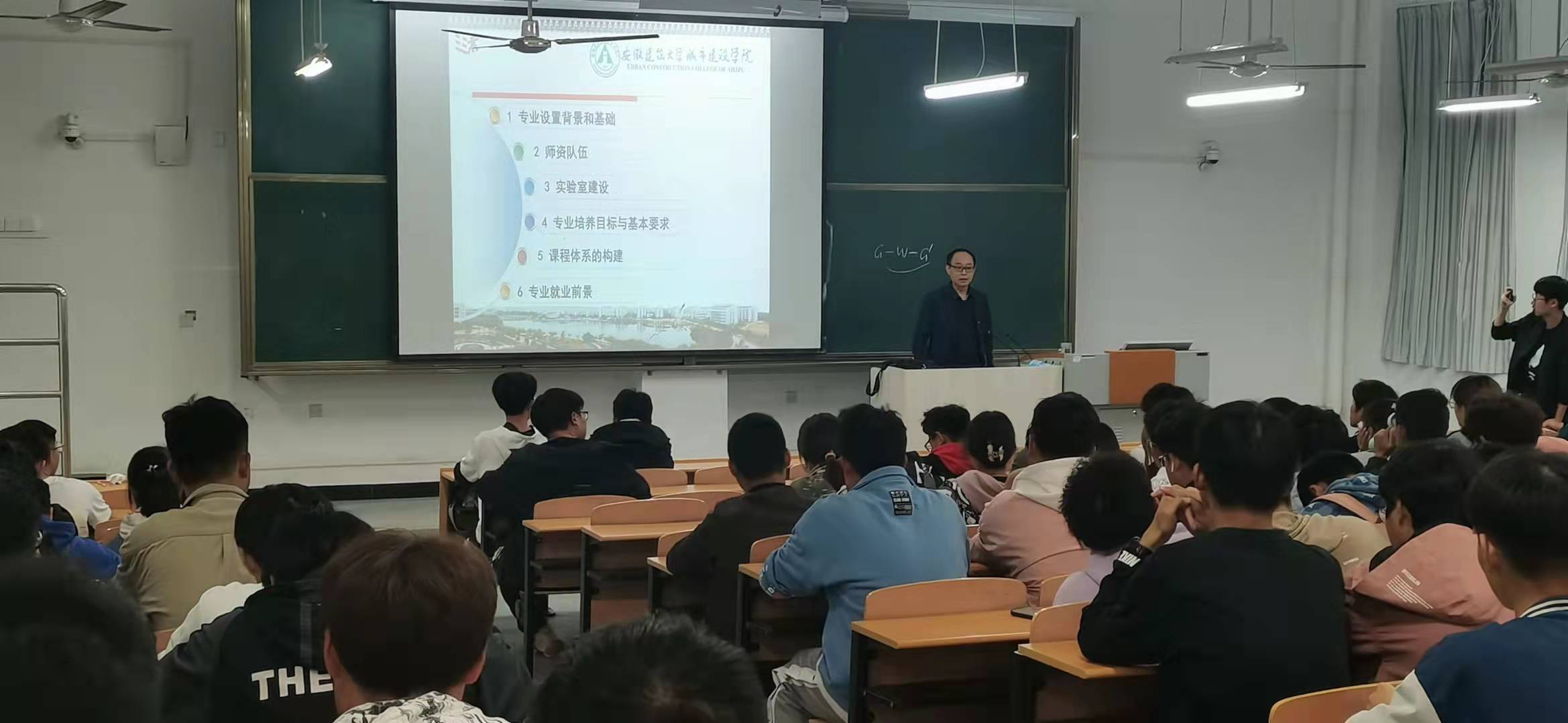 王仕传教授从专业设置背景、师资队伍、实验室建设、专业培养目标与要求、课程体系、就业前景等多个方面,深入浅出的进行了讲解。通过讲解,同学们对土木工程专业的认识更加深刻,对大学四年的生涯有了更为清晰的目标。