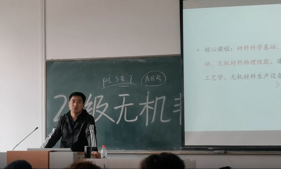 吴教授首先通过常见的水泥、玻璃、陶瓷、混凝土图片展示,让学生直观的认识到无机非金属材料制品。然后吴教授就我校最新的21版培养方案进行讲解,结合材料科学基础、材料研究方法、材料工程基础、无机材料物理性能这几门重要的专业核心课程给学生进行展示,使学生明确了自己的学习任务,学习目标。接着吴教授通过本专业的就业率和考研率,就专业的发展前景进行分析。最后吴教授指出:要根据自身的兴趣、家庭状况和工作性质等综合考虑考研问题;历年本专业就业率均在95%以上,同学们要提前做好职业规划。