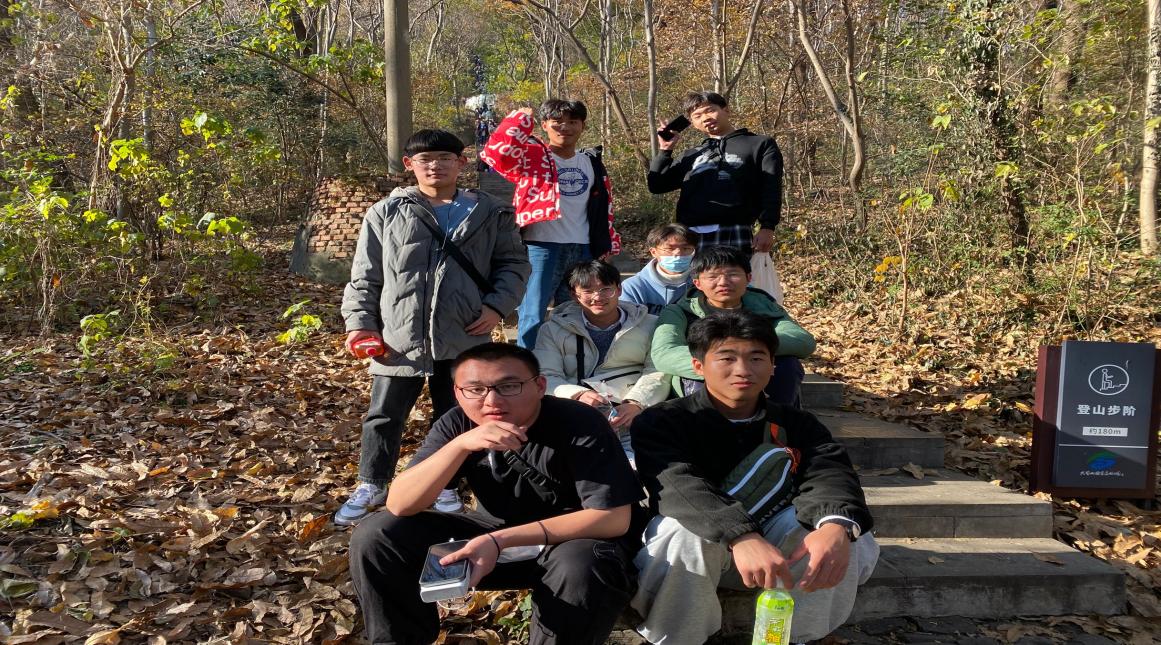 在山顶稍作休息后,同学们兴致不减,准备奔赴团建最后一站。上山容易,下山难。大部分同学们在刚刚的剧烈运动下原本准备老老实实地走平整的大道下山,但是经不住少数同学的诱惑也按捺不住自己那颗爱玩的心,大家还是走上了下山的小道。遇见石头路,同学们就一步一个脚印的慢慢往下走,遇见铺满树叶的平坦路,那就迈开腿,大步往下去。一路上嘻嘻哈哈,走走停停,时间在不知不自觉间悄然流逝。