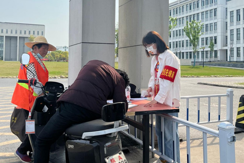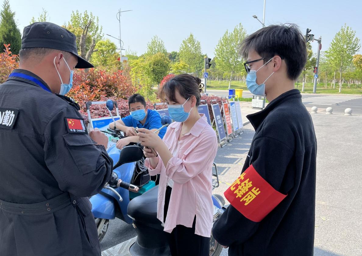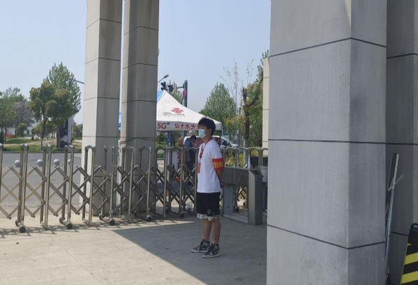 志愿者们顶着烈日,配合保安做好进出人员两码核验、体温检测、信息登记等工作。他们以身作则、以身示范,站好岗、放好哨、值好勤,严格落实校园防控各项措施。