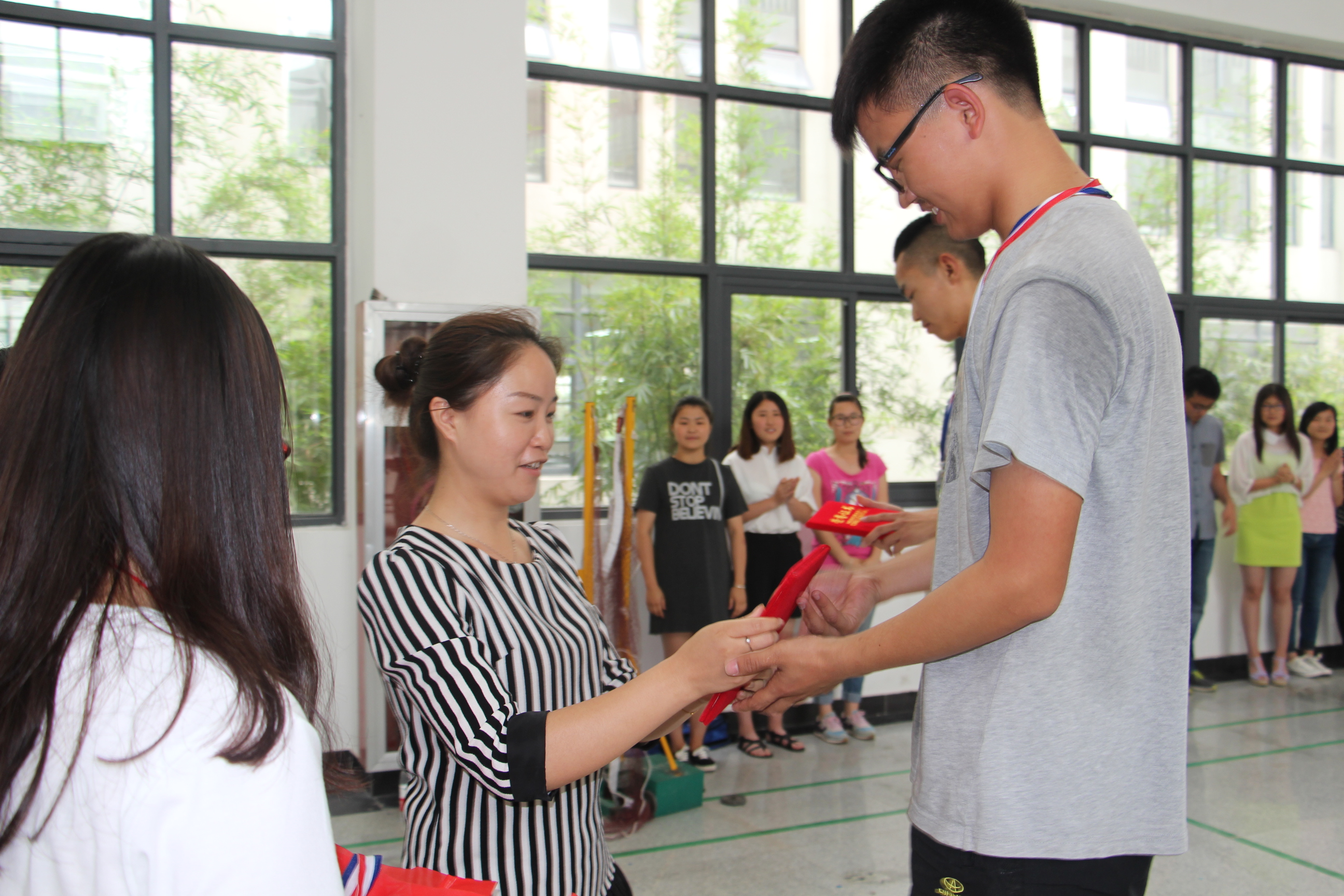 最后,男子单打冠、亚、季军分别是王宜成、黄俊、周天赐,而女子单打的冠军则是郑柯,亚军为谷平,季军为陶琦。男双的冠军获得者是黄俊、王少博,王宜成、张成功两位同学棋差一招获得亚军,季军的头衔则由周天赐、刘亚南摘下。女双的冠军是:左梦君、郑柯,亚军是洪佩、张吉祥,季军杨远露、罗鑫。混双的冠、亚、季军分别为周天赐、张吉祥,王宜成、洪佩,司逸轩、李星星。最后由学生处副处长王利康为以上同学颁奖。